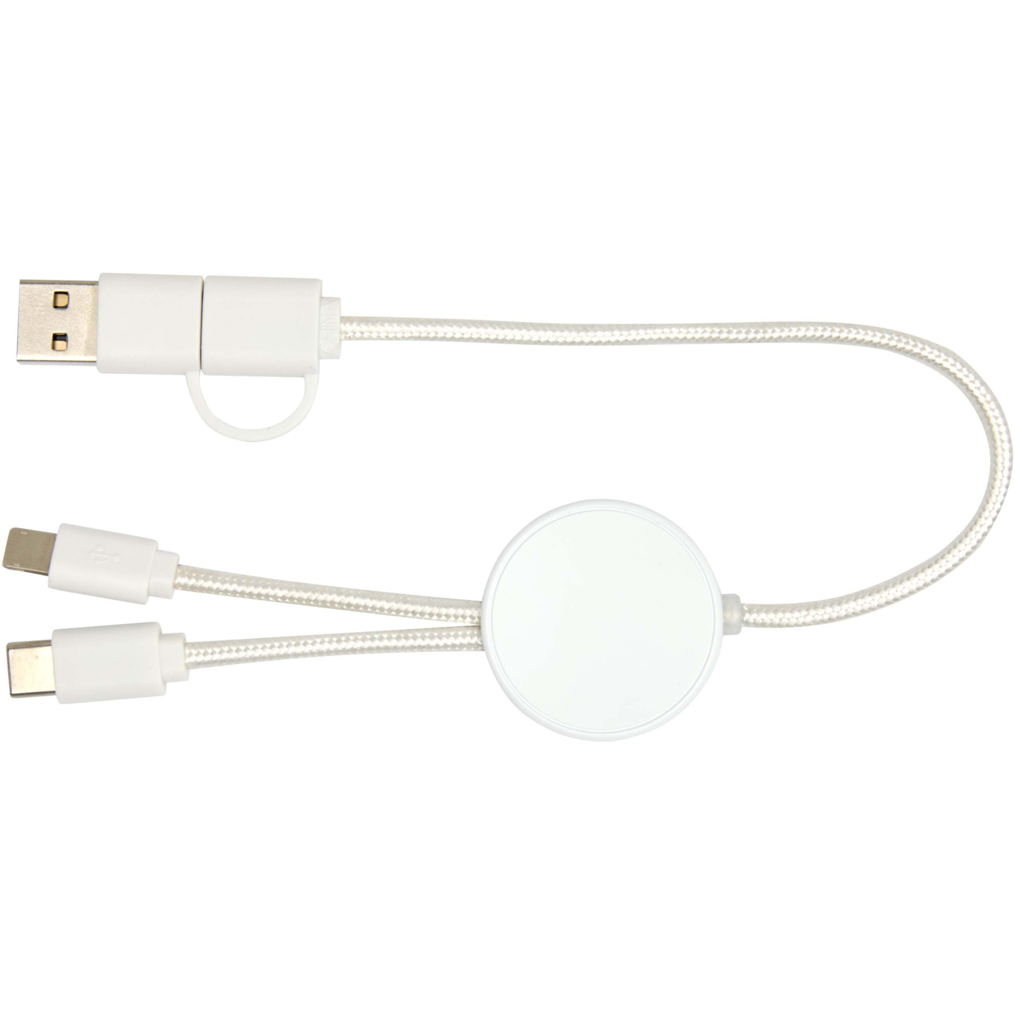 Citala кабель 5-в-1 для синхронизации данных и быстрой зарядки мощностью 27 Вт изготовлен из переработанного пластика. Этот кабель оснащен входными разъемами USB-A и Type-C в сочетании с выходным разъемом Type-C и комбинированным выходным разъемом Lightning/Micro USB. USB-A — USB-C обеспечивает выходную мощность до 27 Вт, а все остальные варианты подключения — до 15 Вт. Совместим с CarPlay и Android Auto. Независимо от того, находитесь ли вы дома, в офисе или в дороге, кабель Citala обеспечивает производительность и стиль в одном компактном корпусе. Длина кабеля: 30 см.
