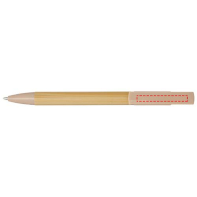 Бамбуковая шариковая ручка, которая также может служить подставкой для телефона. Кнопка и среднее кольцо изготовлены из переработанного пластика, наконечник — из латуни, а корпус — из бамбука, полученного из ответственных источников. Цвет чернил: черный. Длина непрерывной линии: 1000 метров. Размер пера: 1,0 мм.
