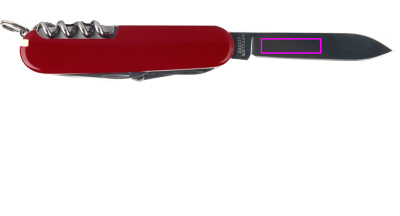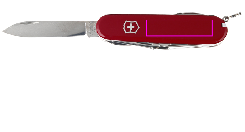 Характеристики: 1. Большое лезвие 2. Маленькое лезвие 3. Штопор 4. Консервный нож 5. Маленькая отвертка (3 мм) 6. Подъемник для крышек 7. Отвертка (6 мм) 8. Инструмент для зачистки проводов 9. Развертка 10. Кольцо для ключей 11. Пинцет 12. Зубочистка