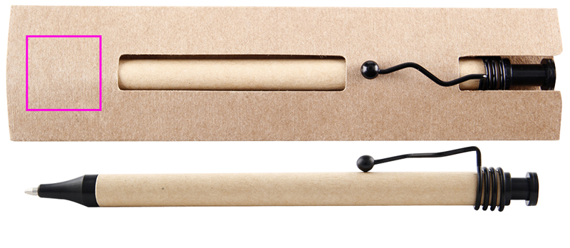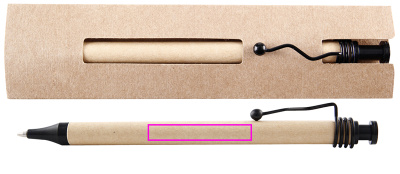 Шариковая ручка с синими чернилами из переработанного картона, с гофрированным металлическим зажимом и пластиковым наконечником, упакована в картонный футляр. Мы напечатаем ваш логотип под зажимом.