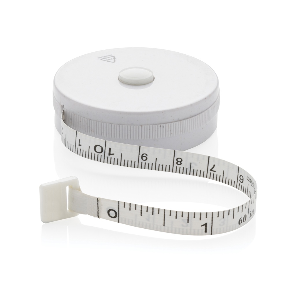 Лента из переработанного пластика длиной 1,5 м/60 дюймов с кнопкой возврата для фитнеса и моды. Корпус изготовлен из переработанного АБС-пластика, сертифицированного RCS, стекловолокна и бамбука FSC® 100%. Общее содержание переработанных материалов: 64% от общего веса изделия. Сертификация RCS гарантирует полностью сертифицированную цепочку поставок переработанных материалов. Лента имеет ширину 8 мм и вытягивается кнопкой. Упакована в упаковку FSC® mix.