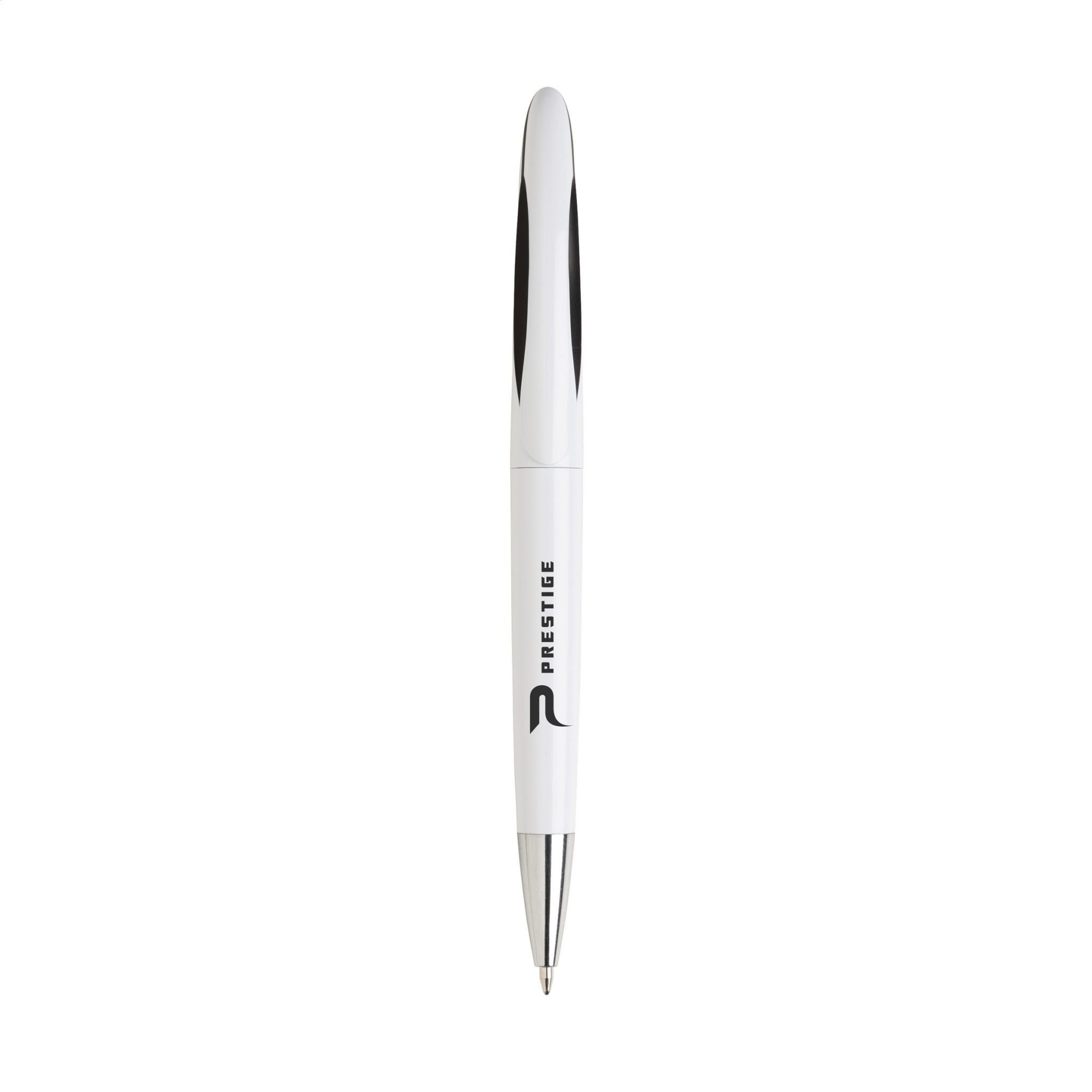Шариковая ручка с синими чернилами, стильным клипом с ярким цветовым акцентом и поворотным механизмом.