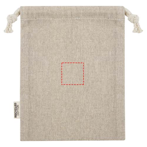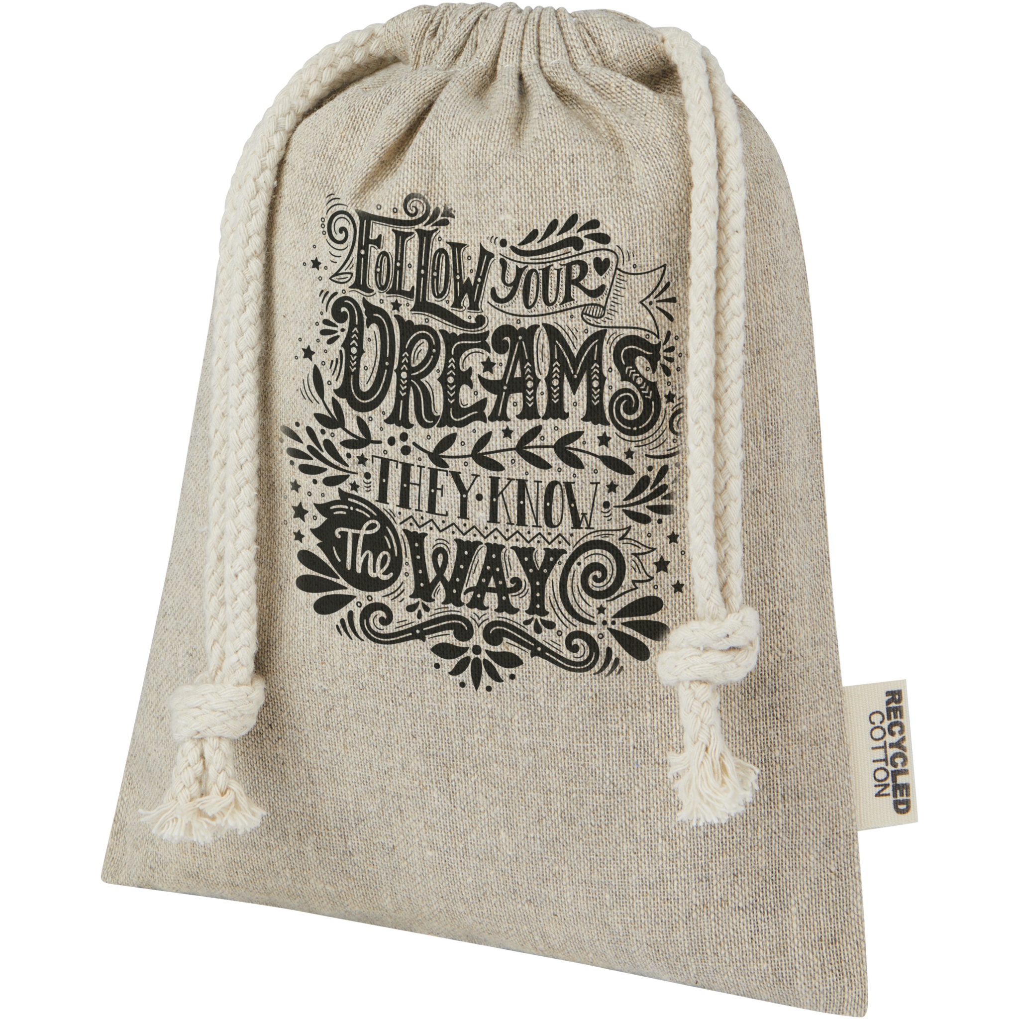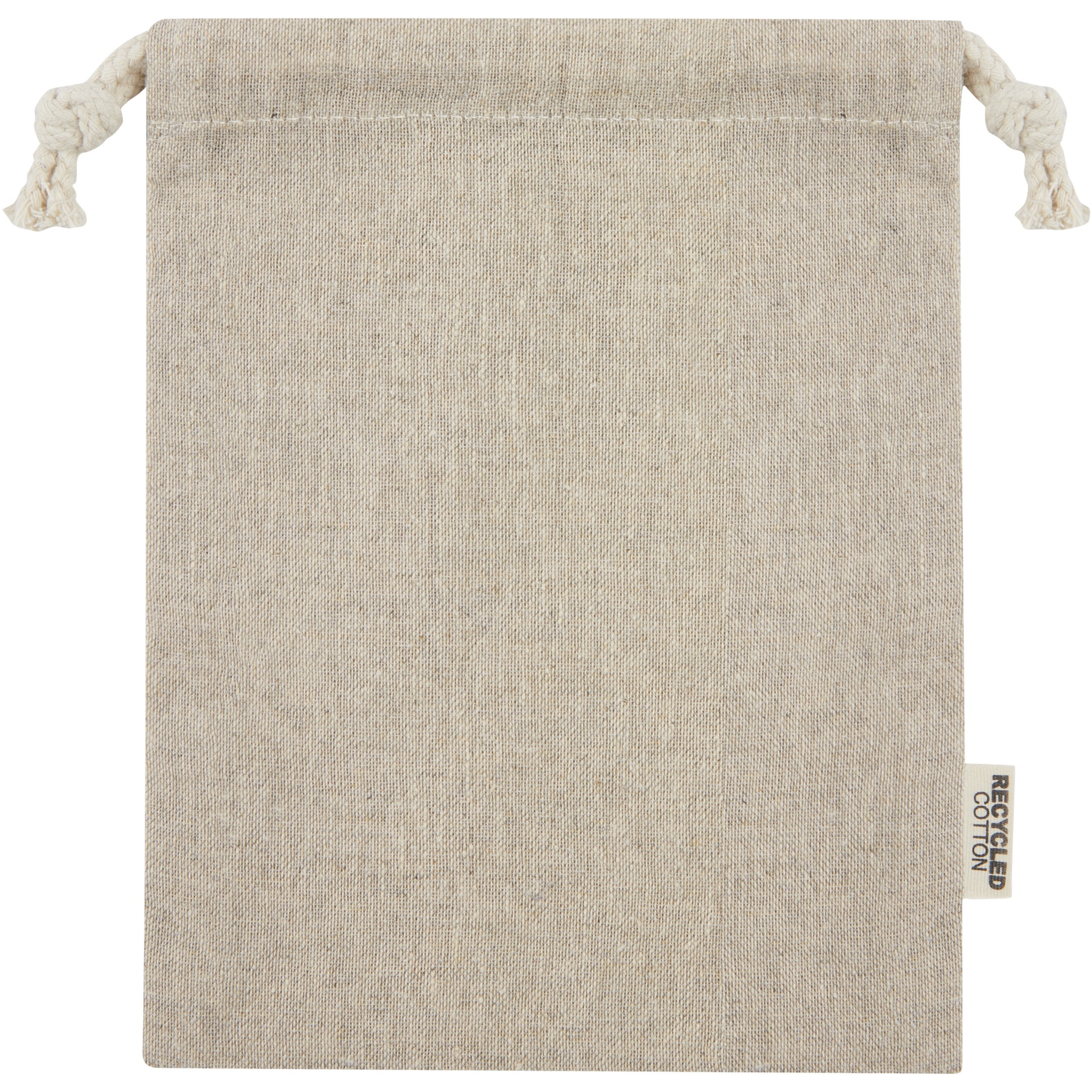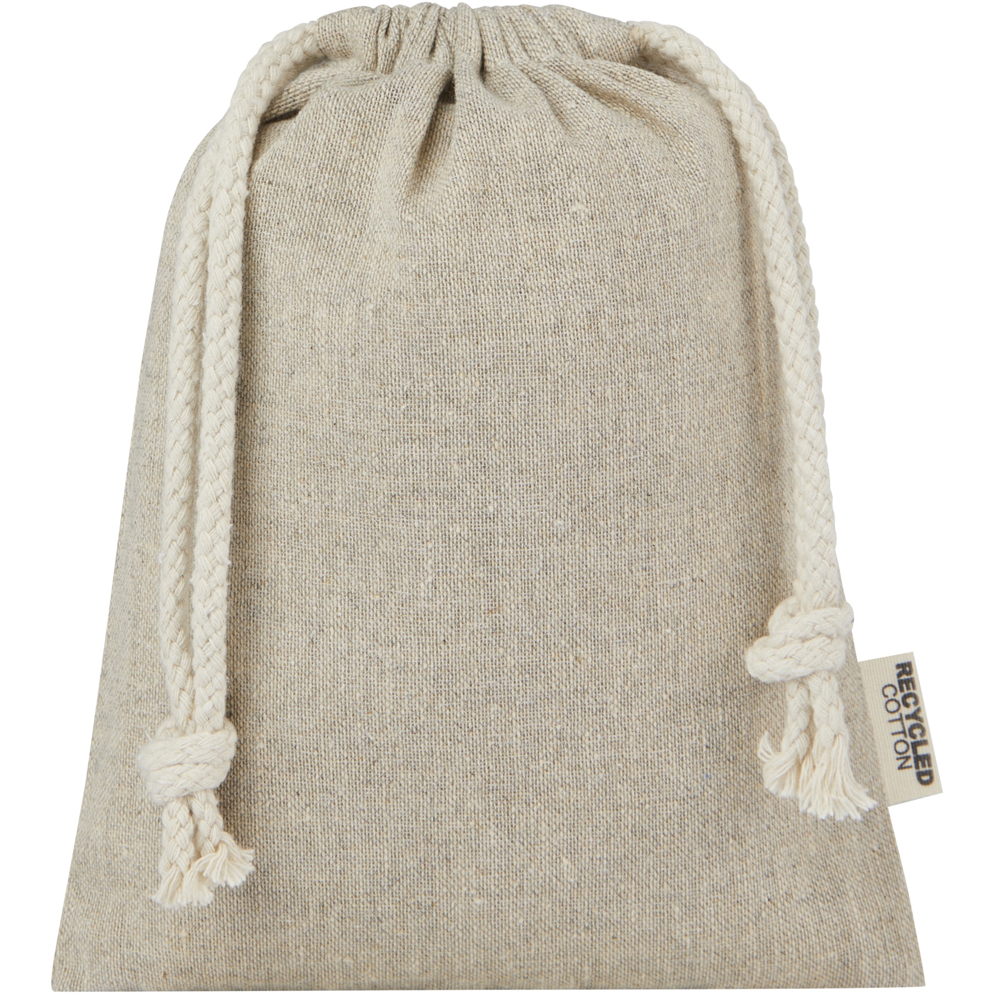 Подарочная сумка из хлопка, переработанного по стандарту GRS, с хлопковым шнурком для затягивания. Идеально подходит для подарков или хранения предметов. Размер: 15 x 20 см.