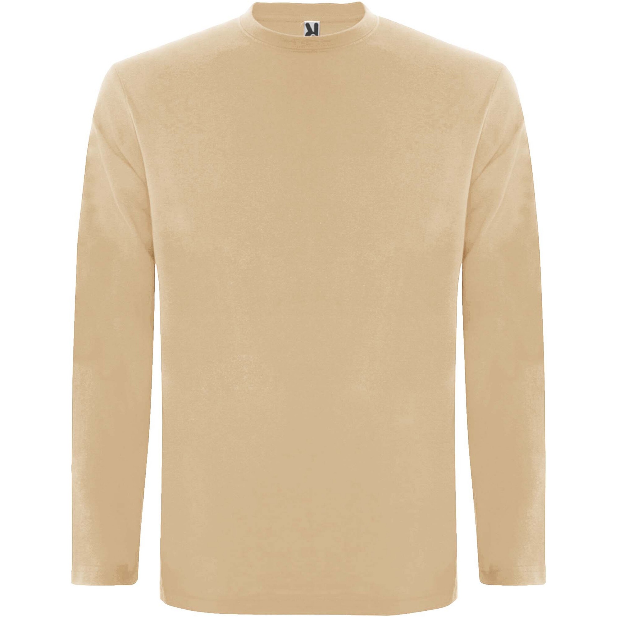 Футболка из трубчатой ткани с длинными рукавами и с четырехслойной круглой горловиной. Усиленные закрытые швы горловины и на плечах. Без манжет. Съемная этикетка. Трубчатая модель для взрослых размеров и боковые швы для детских размеров.