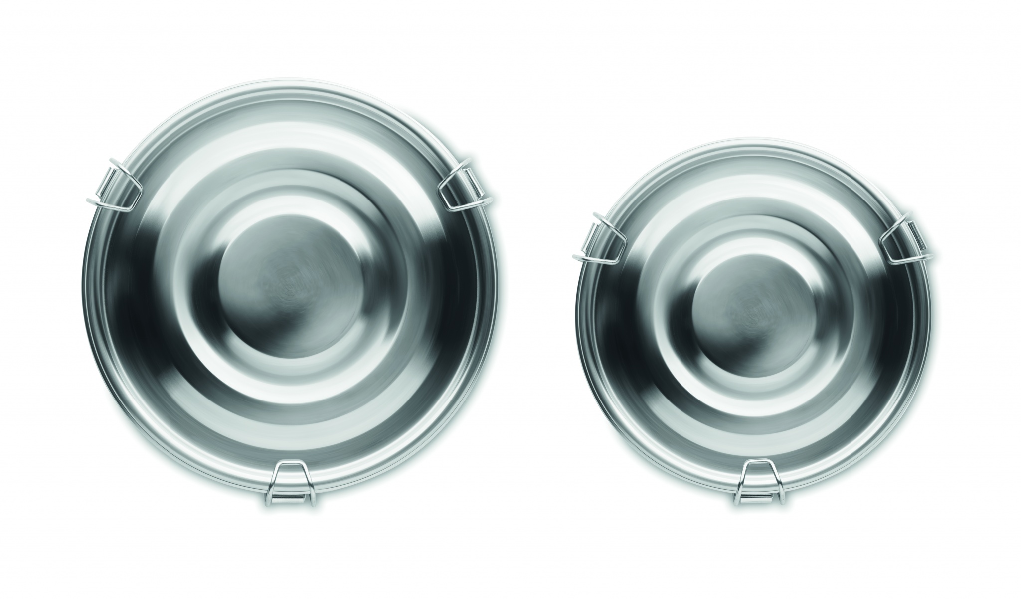 Набор контейнеров из нержавеющей стали с прочными боковыми застежками. Вместимость: 450 мл. и 900 мл.