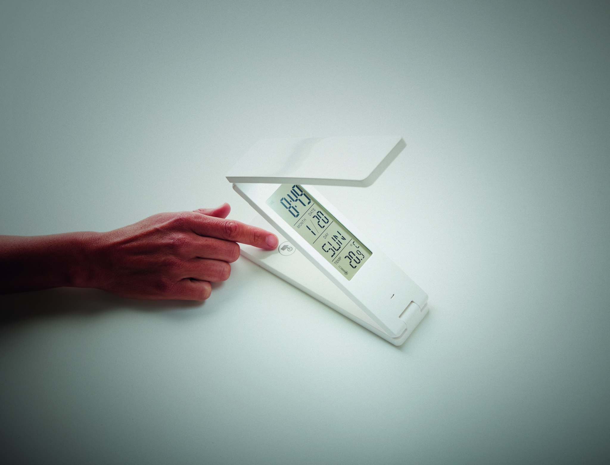 Настольная лампа 18 LED складная. Также это и метеостанция. Выполнена из пластика ABS. Отображает время, температуру. Функция будильника. В комплекте 1 батарейка CR2032.
