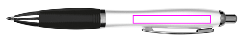 Шариковая ручка с белым корпусом, металлическим зажимом, синим стержнем большой емкости и цветной мягкой зоной захвата. Мы напечатаем ваш логотип на правой стороне зажима.