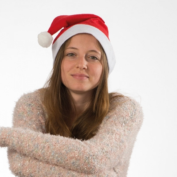 Рождественская шапка из фетра. Ваше рекламное сообщение будет нанесено трафаретной печатью на белый край шапки.