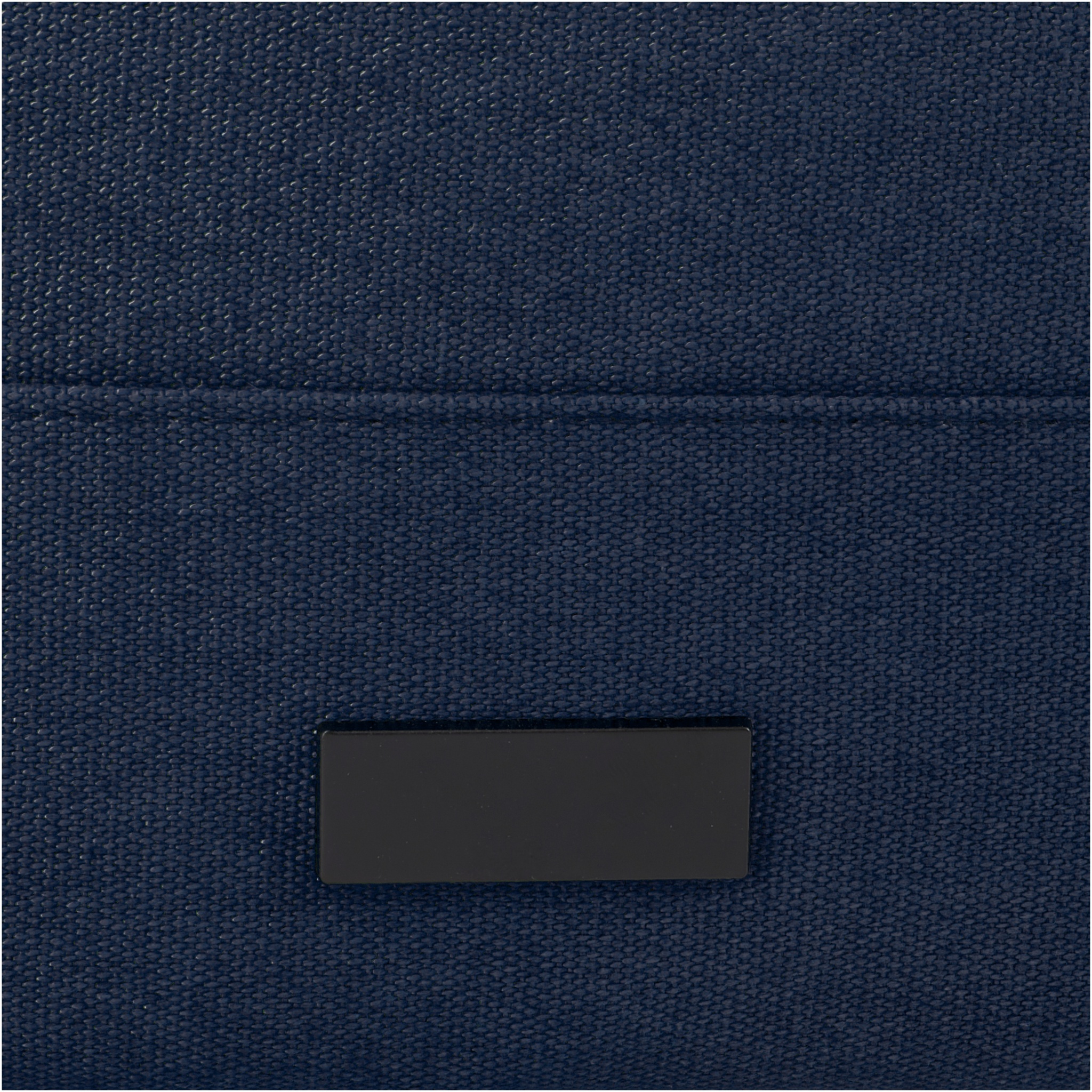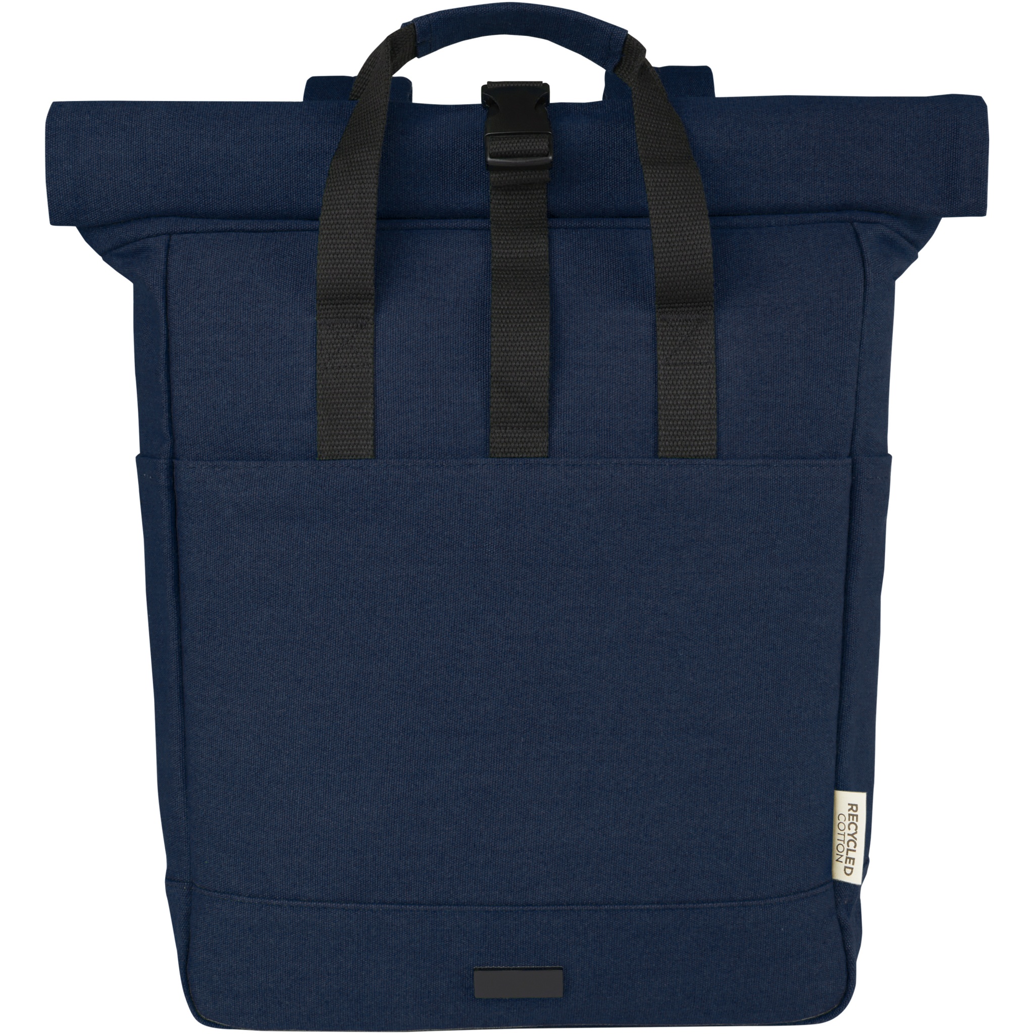 Изготовленный из высокопрочных экологичных материалов, брезента и подкладки из переработанного ПЭТ, соответствующих стандарту GRS, рюкзак Joey со сворачивающимся верхом имеет специальный чехол для планшета и отделение с подкладкой для ноутбука диагональю 15 дюймов. Рюкзак также имеет 2 боковых кармана для воды, один большой передний карман на молнии и сворачивающуюся верхнюю часть на молнии для максимальной вместимости и безопасности. Две усиленные вязанные ручки обеспечивают удобство и простоту ношения в качестве деловой сумки-тоут. Декоративная металлическая пластина может придать логотипу сияние благодаря утонченному матовому покрытию.