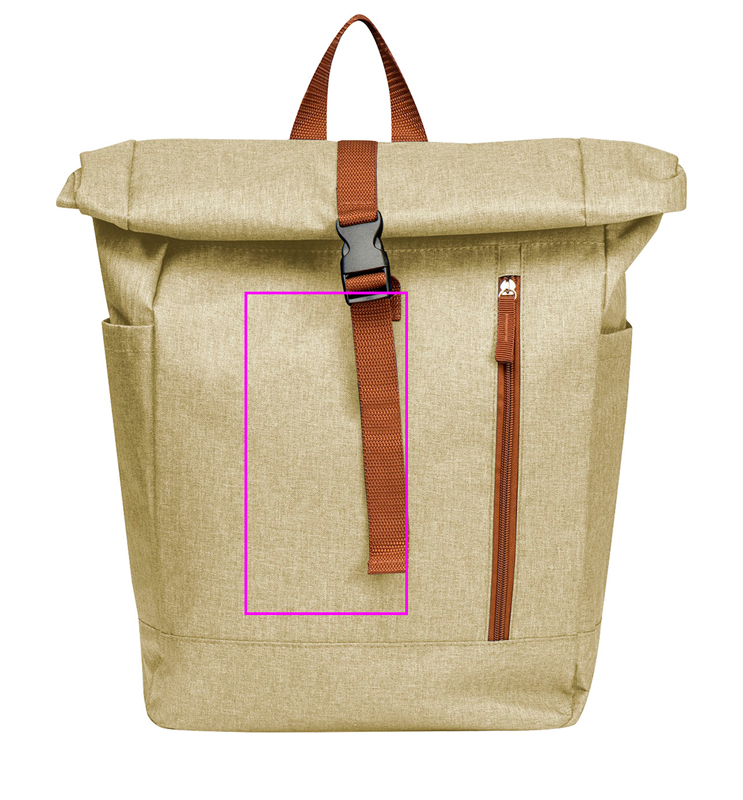 Рюкзак из полиэстера 500D со складной или рулонной застежкой, мягкими ремнями, ручкой для переноски и запирающимся передним отделением. Ваш логотип будет напечатан на переднем отделении.