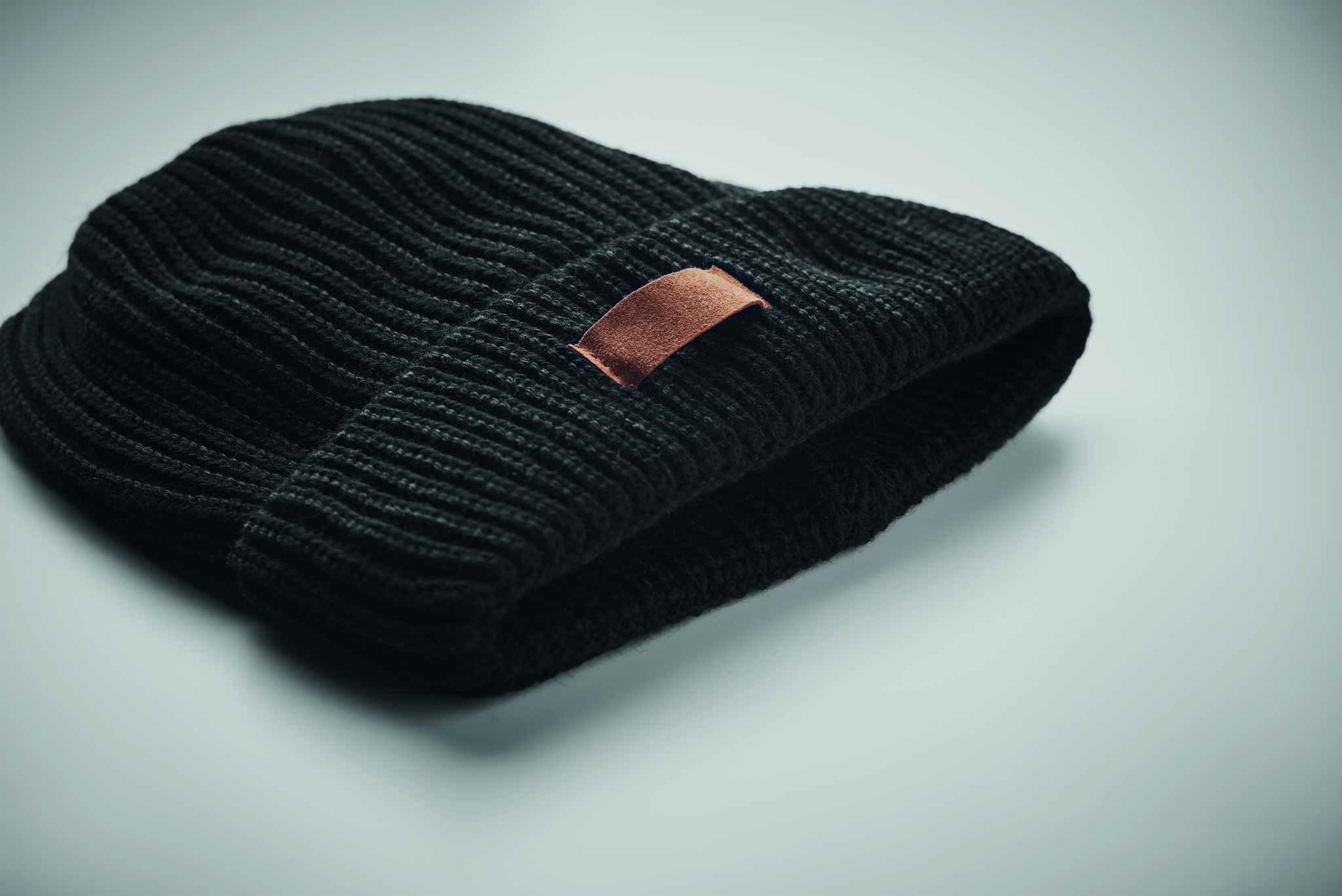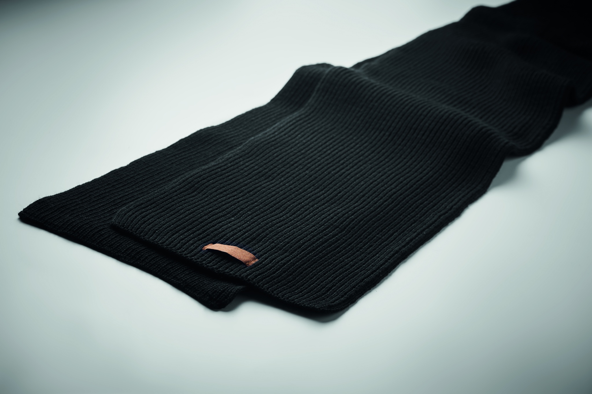 Зимний комплект из 3 предметов. Включает в себя шапочку из переработанного материала, шарф и тактильные перчатки с нашивкой для нанесения.