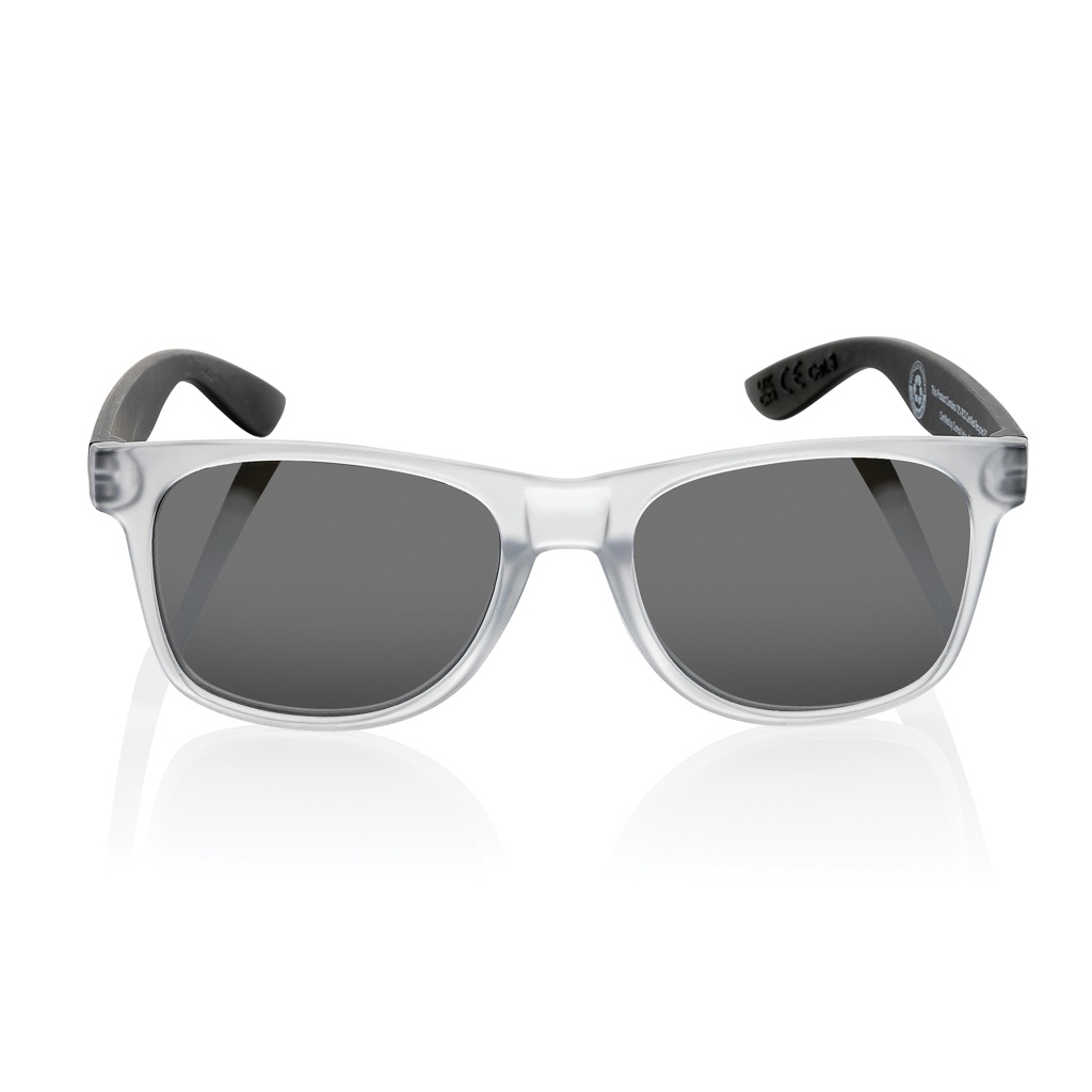 Солнцезащитные очки с сертифицированной RCS переработанной прозрачной оправой из поликарбоната. С цветными зеркальными линзами. Общее содержание переработанных материалов: 72% от общего веса изделия. Сертификация RCS гарантирует полностью сертифицированную цепочку поставок переработанных материалов. Линзы соответствуют EN ISO 12312-1, UV 400 и CAT 3. Упакованы в крафт-коробку FSC®.