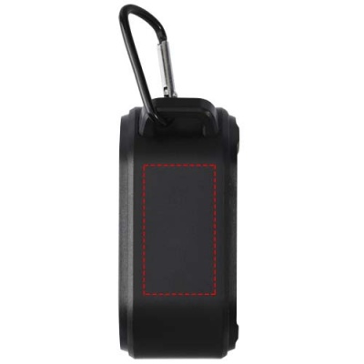 Лого трейд бизнес-подарки фото: Solo — колонка с карабином мощностью 3 Вт из переработанной пластмассы IPX5, сертифицированной по стандарту RCS, с солнечной