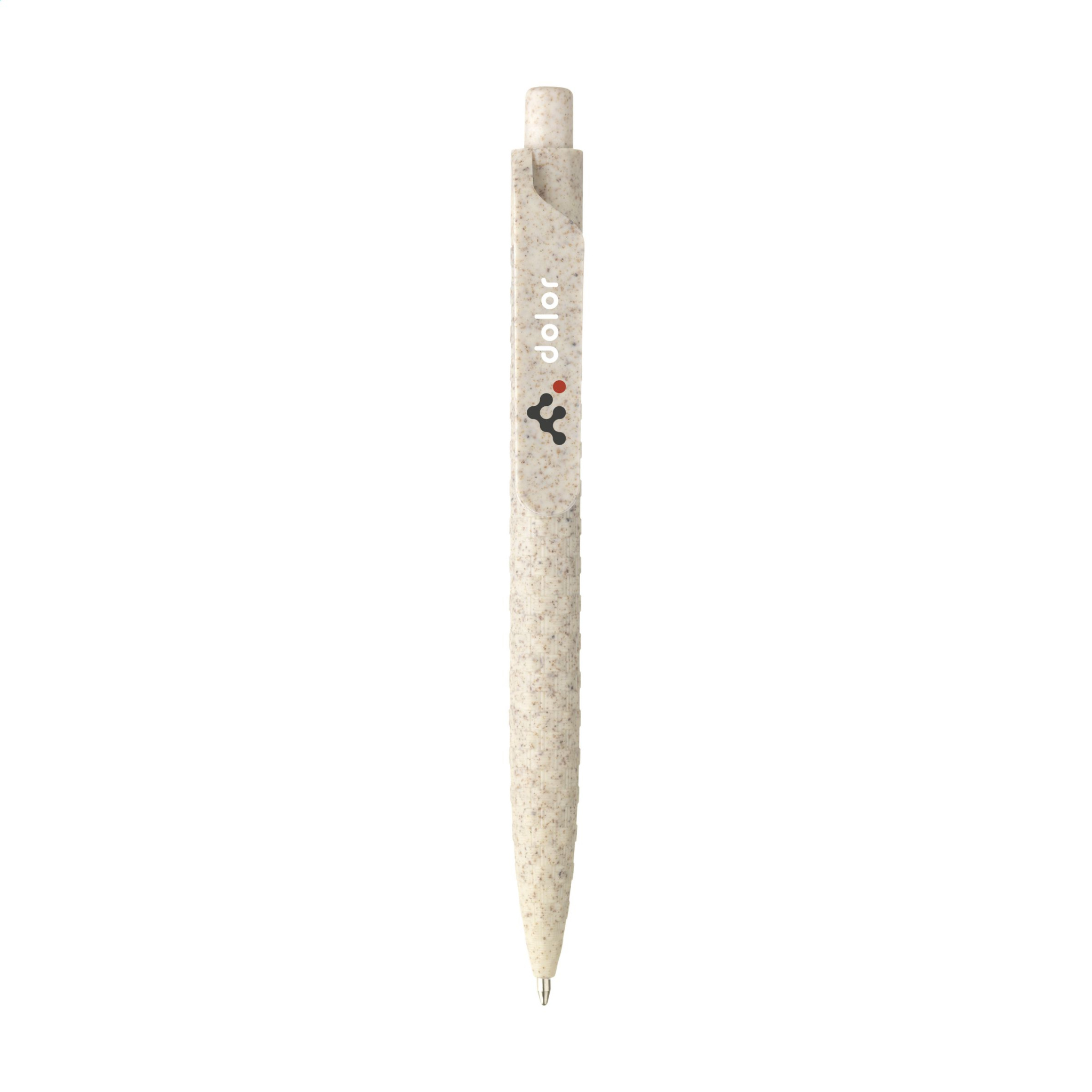 Экологичная шариковая ручка с синими чернилами, изготовленная из 60% пшеничной соломы и 40% АБС. Корпус, зажим и кнопка изготовлены из остатков стеблей собранной пшеницы. Поставляется с большим зажимом для печати логотипа или текста.