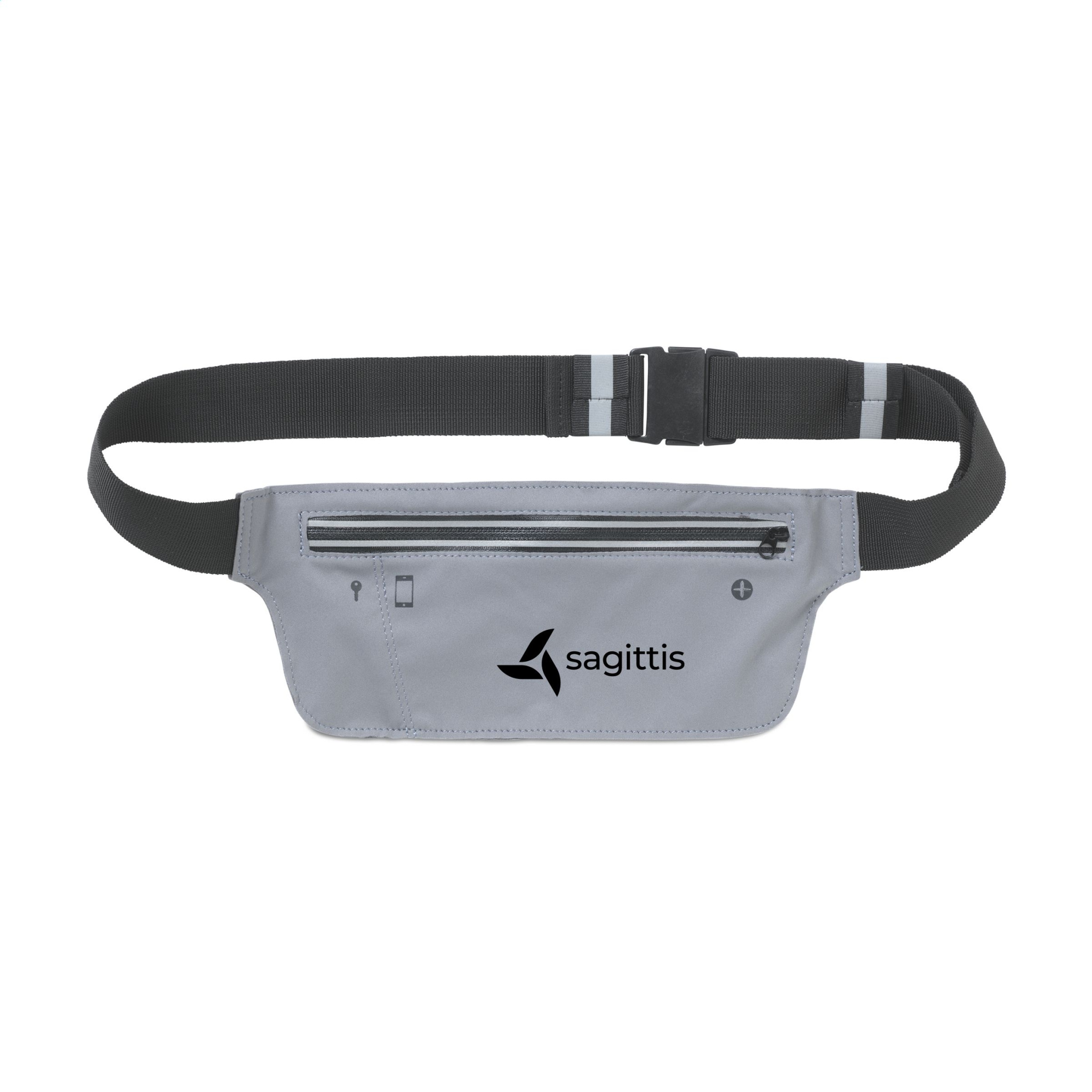 Водонепроницаемая поясная сумка из удобного эластичного материала. С водонепроницаемой молнией, карманом для мобильного телефона, с отверстием для наушников. Отдельное отделение для ключей. Регулируемый, плотно сплетенный пояс с пластиковой застежкой-кнопкой и светоотражающими шлевками. Обхват до 104 см.