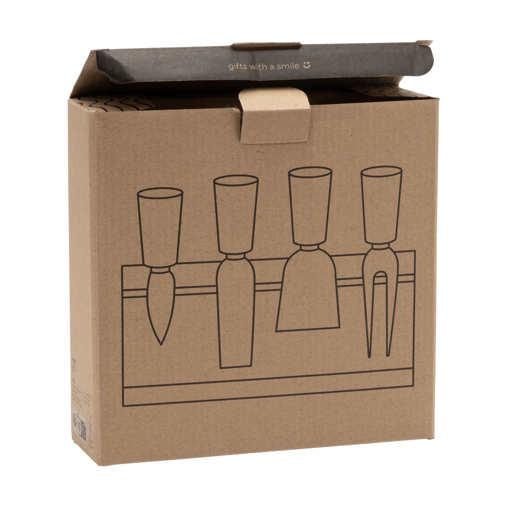 Сырная доска из бамбука, сертифицированного FSC на 100%. С держателем ножей, оснащенным магнитной полосой. Включает 3 сырных ножа и 1 сырную палочку. ПРИМЕЧАНИЕ: Из-за естественных волокон и контуров бамбука мы не можем гарантировать постоянство глубины/цвета гравировки. Изделия поставляются в наборе, каждый набор индивидуально упакован.