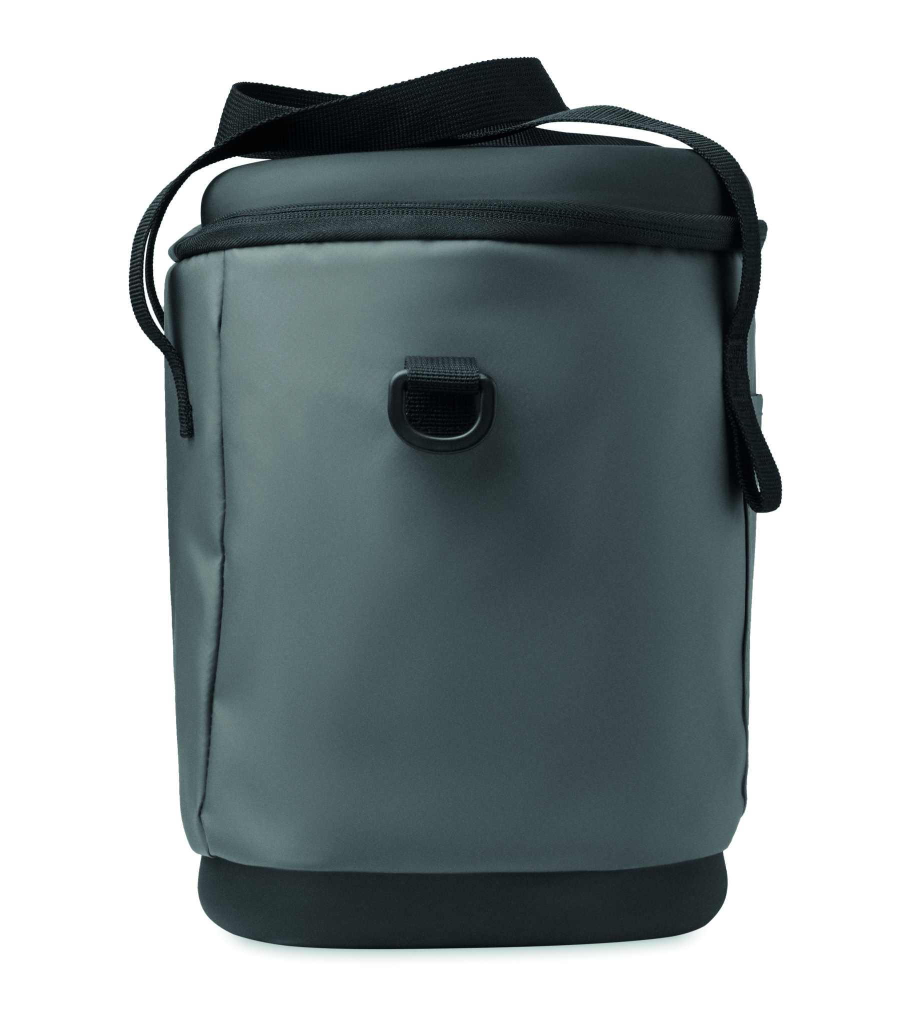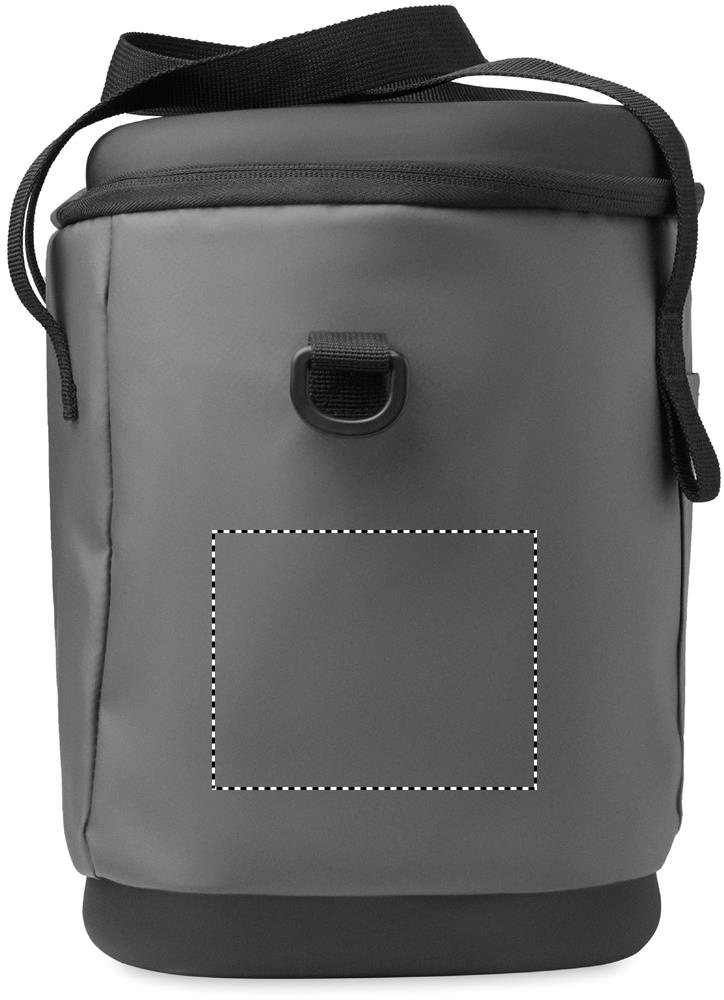 Cooler bag in 50C tarpaulin and top/bottom in rigid PEVA and bottle opener on the side. Including 1 front pocket and 1 inner mesh pocket. Isolation material: PE foam layer. Includes 2 handles and 1 adjustable and detachable strap. Capacity 40L.