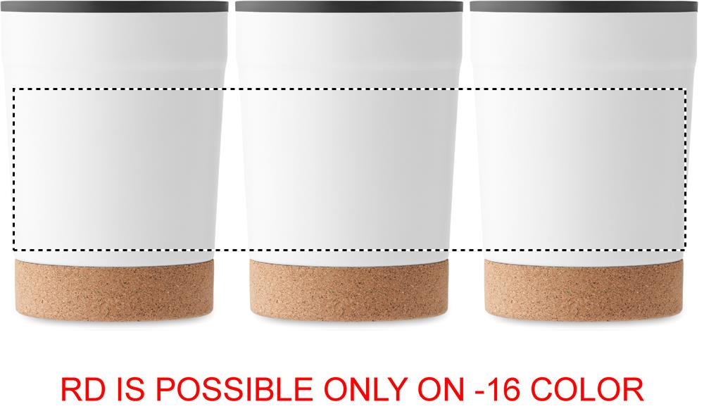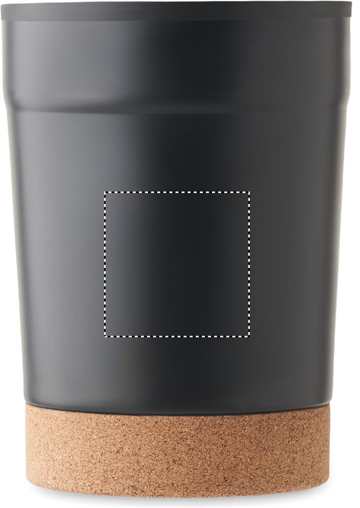 Термокружка с двойными стенками из нержавеющей стали снаружи и полипропилена внутри, пробковое дно и слайдер на крышке. Герметична. Объем: 300 мл.