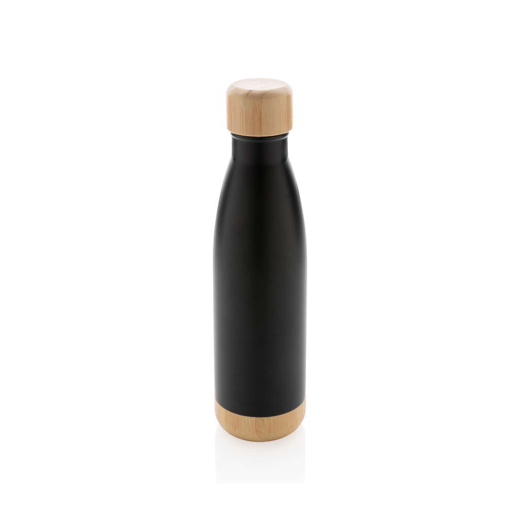Вакуумная бутылка из нержавеющей стали с бамбуковой крышкой и дном, черный
