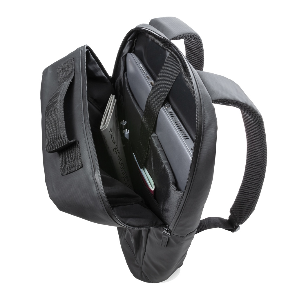 Elegant laptopryggsäck i PU. Stort huvudfack med plats för alla dina tillhörigheter och ett laptopfack med plats för 15.6" laptop. PVC-fri.