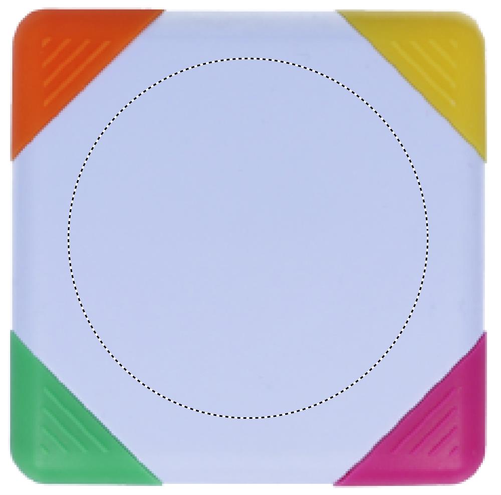 Markeringspenna ''Highlighter'' kvadratisk form i ABS hölje. Pennornas färg är: Gul, cerise, orange och grön.