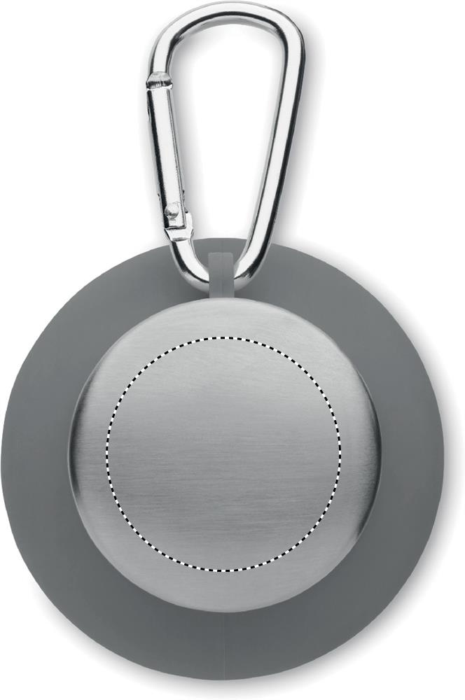 Hopfällbar silikonflaska med lock i rostfritt stål och karbinhake i aluminium. Karbinhaken är inte avsedd för klättring (icke-professionell användning). Volym: 500 ml.