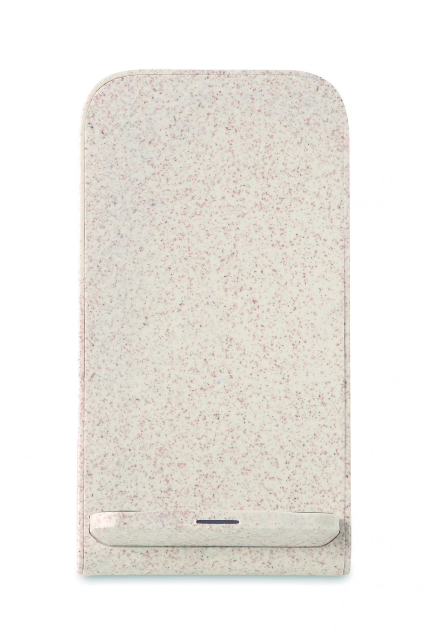 Trådlösladdare med hållare. Tillverkad iav 35% vetehalm och 65% ABS. Effekt DC5V/2A (10W).