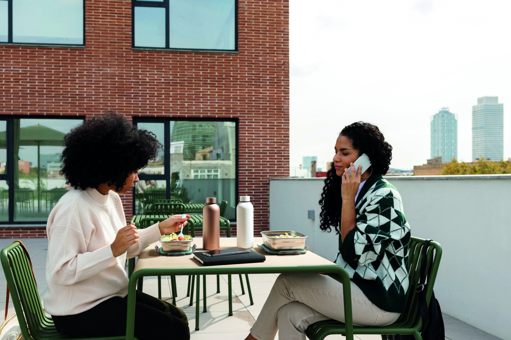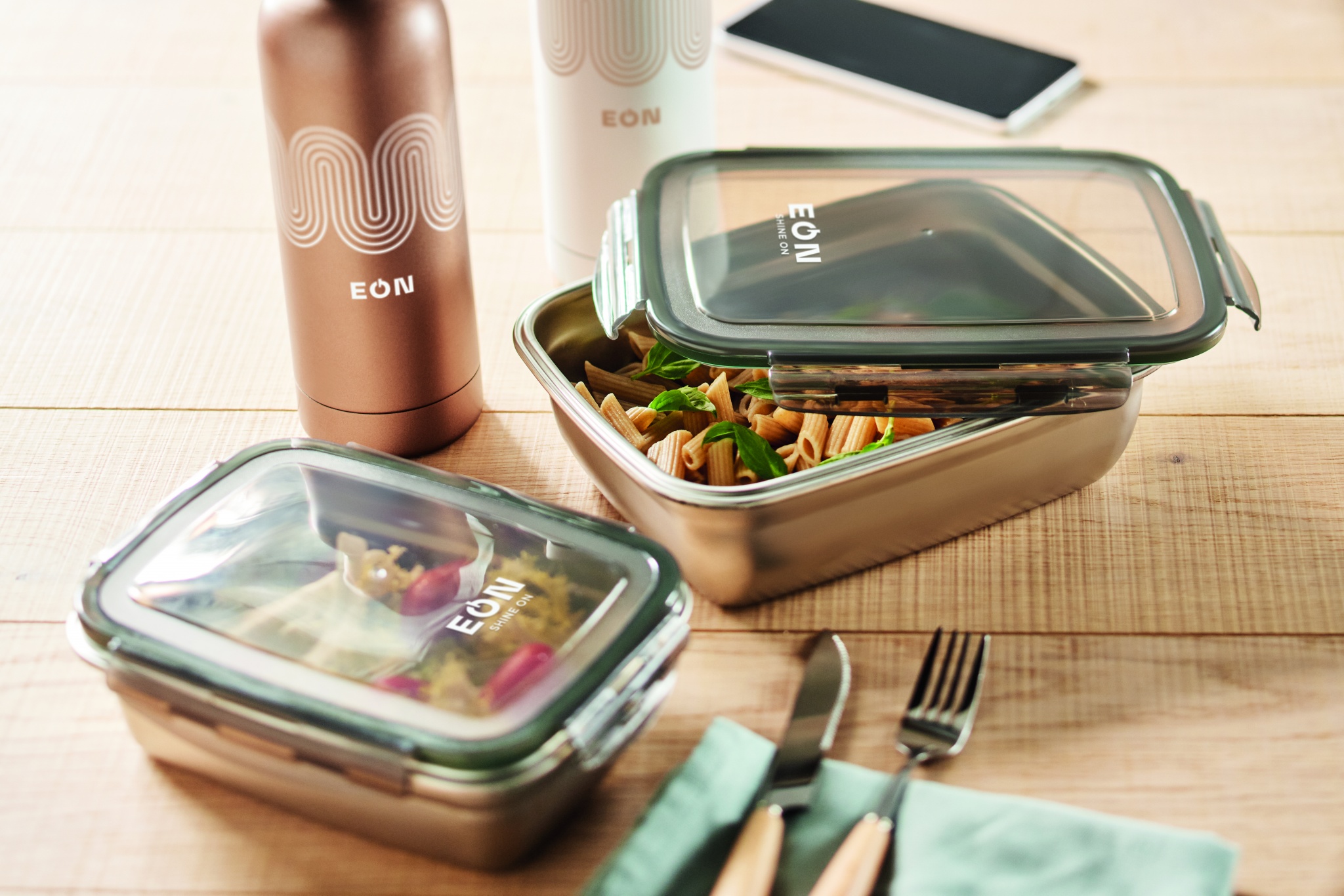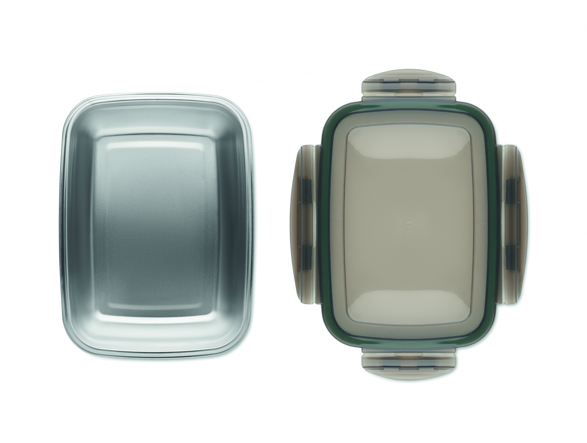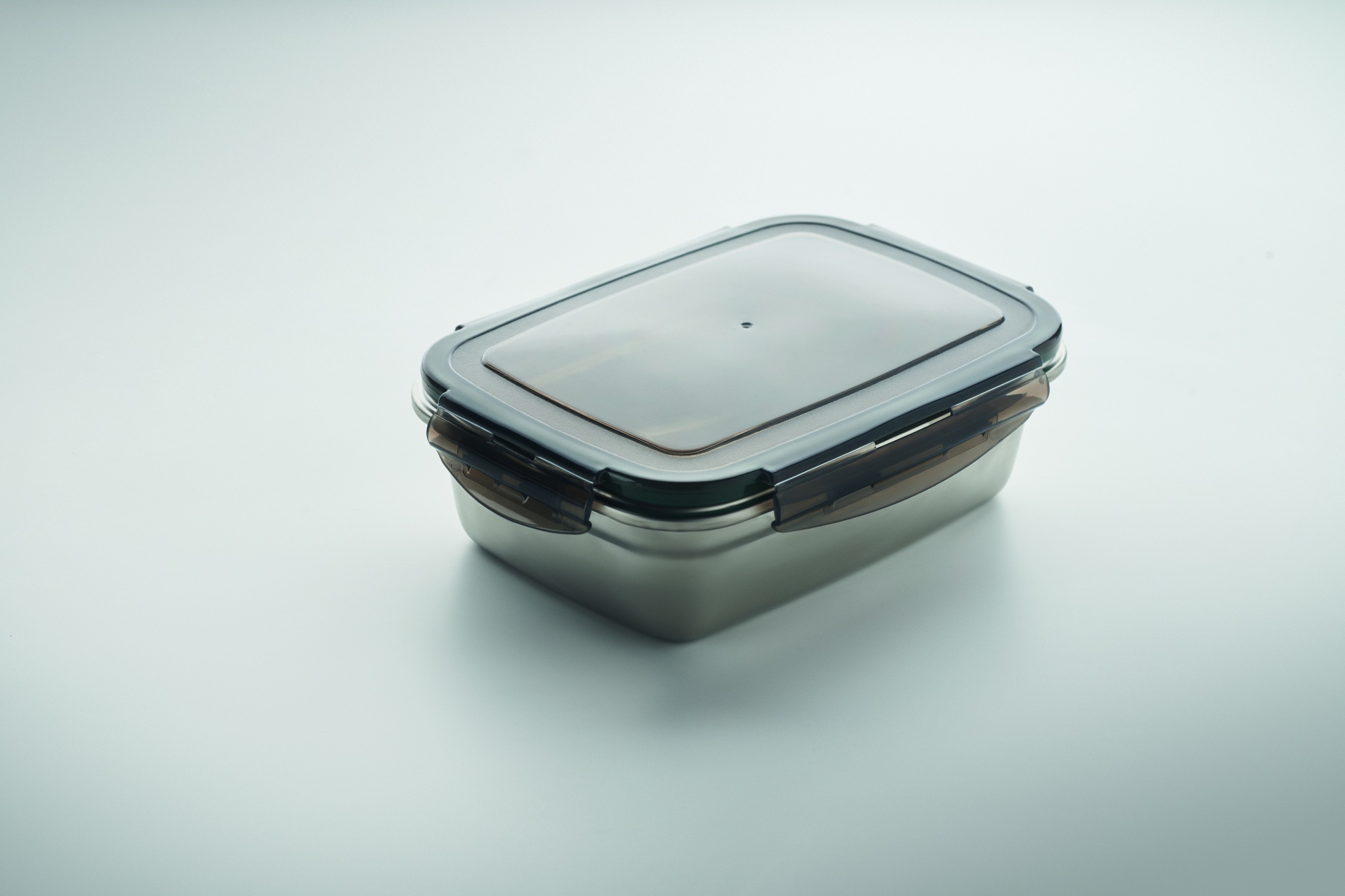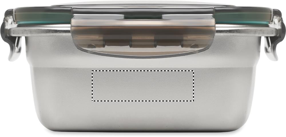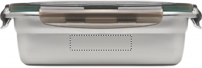 Lunchlåda i återvunnet rostfritt stål med återvunnet PP-lock och 4 spännen, ett på varje sida. Volym: 850 ml.