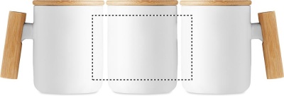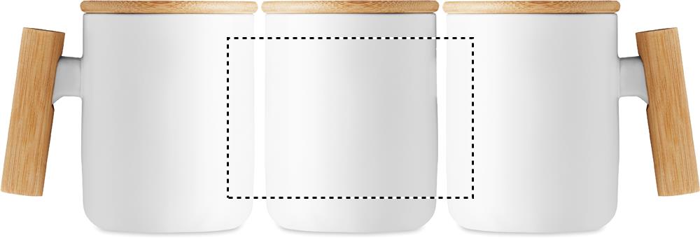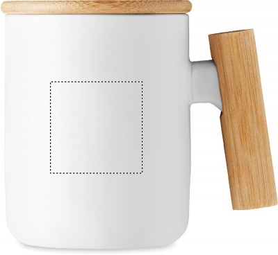 Porslinsmugg med lock och handtag av bambu. Kapacitet: 380 ml.