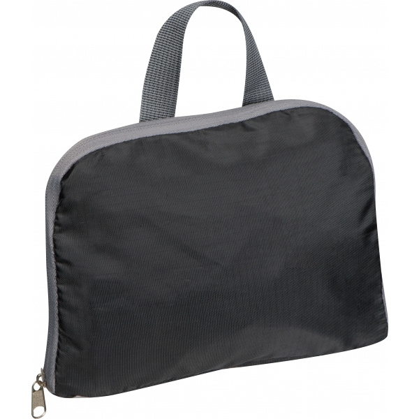Vikbar ryggsäck tillverkad av återvunnen PET. Ryggsäcken har ett huvudfack, två sidfickor i mesh och en framficka med dragkedja samt justerbara axelband. Den främre blixtlåsfickan fungerar som en ficka för förvaring av den vikta ryggsäcken. Ryggsäcken levereras i stängt tillstånd. Din logotyp kommer att tryckas på utsidan när ryggsäcken stängs. Tryck på framfickan på ryggsäcken är tillgänglig på begäran.