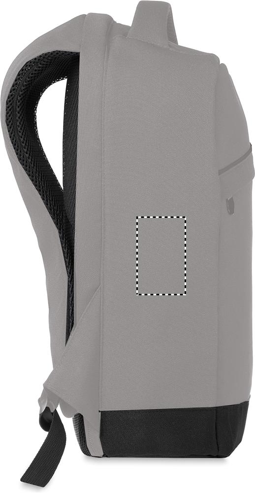 Ryggsäck i 600D duoton nylon med vadderad axelrem, ficka för 13 tums laptop och en laddsladdsingång.
