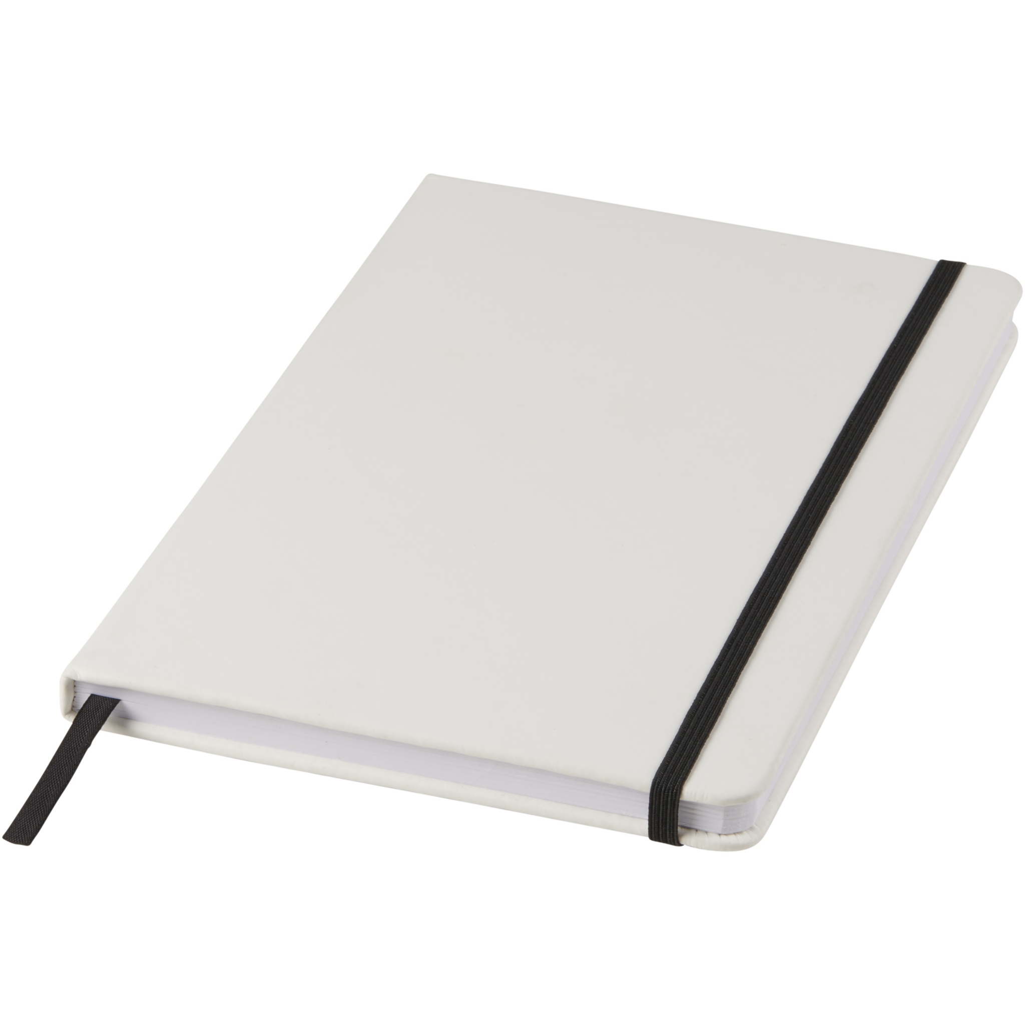 Spectrum vit anteckningsbok A5 med färgad kontrast. Vit A5 anteckningsbok med kontrastfärg på resårband och avdelare. Inklusive 80 ark linjerat papper (60 g/m²). Kan märkas med digitaltryck på omslaget. PVC täckt kartong.