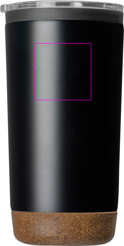 Elegant dubbelväggig termomugg av rostfritt stål med en kapacitet på 600 ml och en stilren korkbotten. Den perfekta följeslagaren för på språng. Vi laserar din logotyp på koppen.