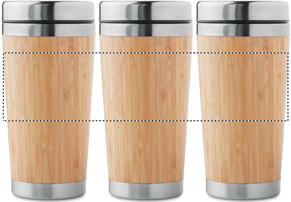 Termosmugg i rostfritt stål med utsida i Bambu. Dubbla väggar för bättre värmeisolering. Fungerar för både varma och kalla drycker. Volym: 400ml.