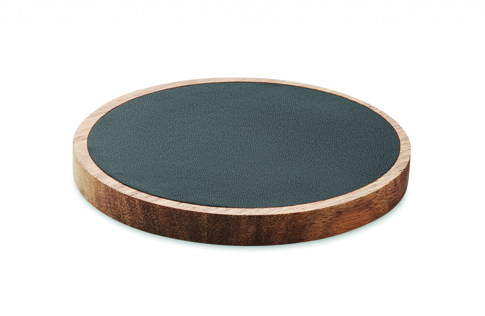 Trådlös laddare i akaciaträ och återvunnen PU. Anslut enheten till din dator, placera din smartphone på den och låt den laddas. Utgång: DC 9V/1,67A (15W). Kompatibel med alla QI-aktiverade enheter som senaste Androids, iPhone® 12, X och nyare.