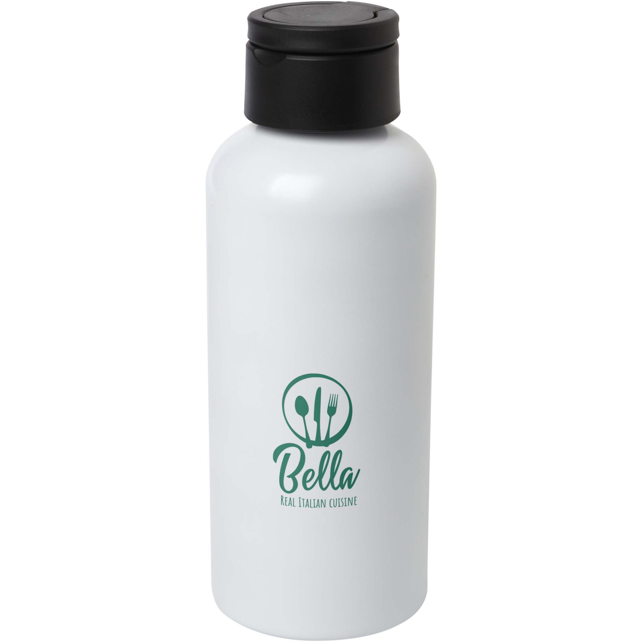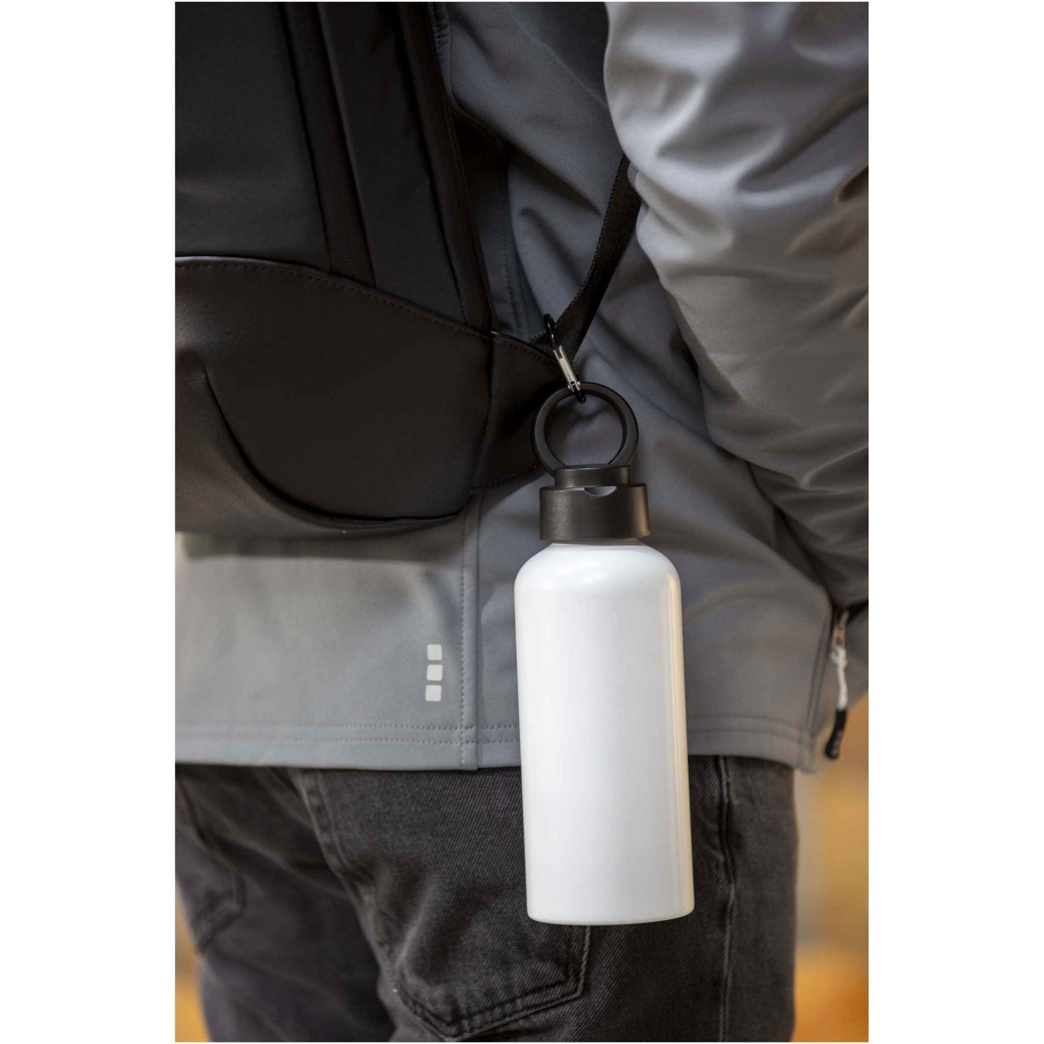 Vattenflaska av RCS-certifierad återvunnen aluminium med ett snyggt lock. Locket är tillverkat av återvunnen plast och har en diskret bärögla. Lätt och enkel att bära. Volymkapacitet: 600 ml.