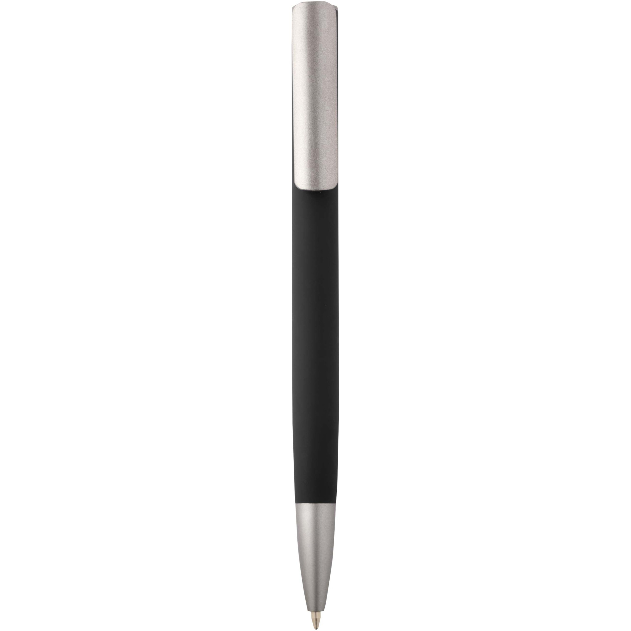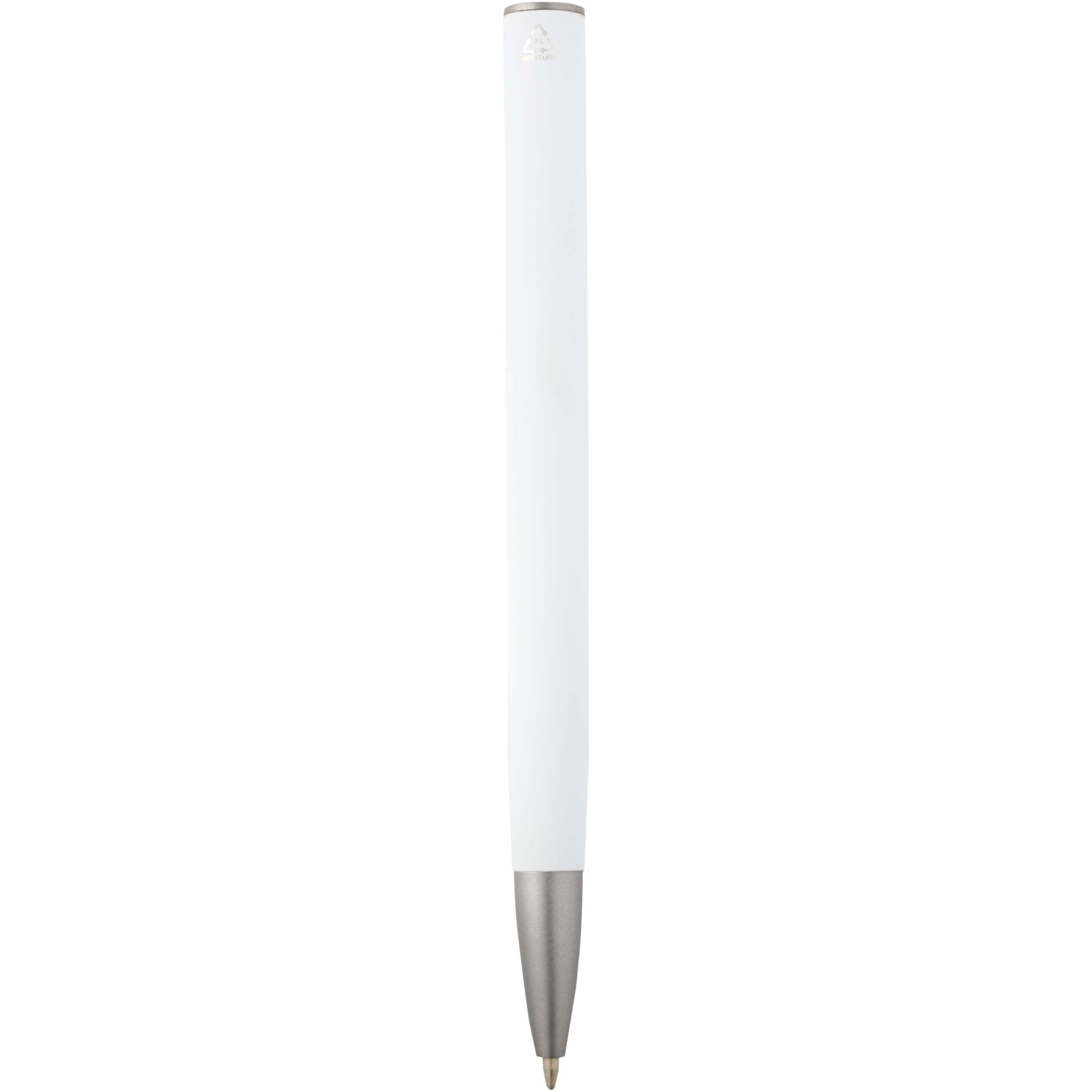 Kulspetspenna med pennkropp av återvunnen aluminium och silverbelagda klips av ABS-plast. Det återvunna aluminiumet minskar också mängden avfall i deponier och bidrar till att bevara naturresurser med syftet att minska växthusgasutsläppen. Bläckfärg: Svart. Skrivlängd: 800 meter. NIB-storlek: 1,0 mm.